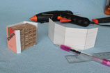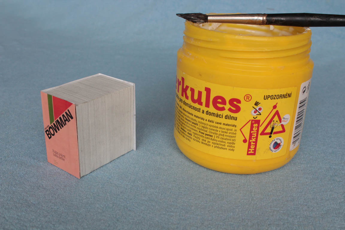 hrany, pak pomažeme boky a zadní část hranolku lepidlem a