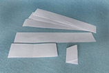 ostré. Hotové pruhy skládáme teď už příčně na poloviny a to celkem