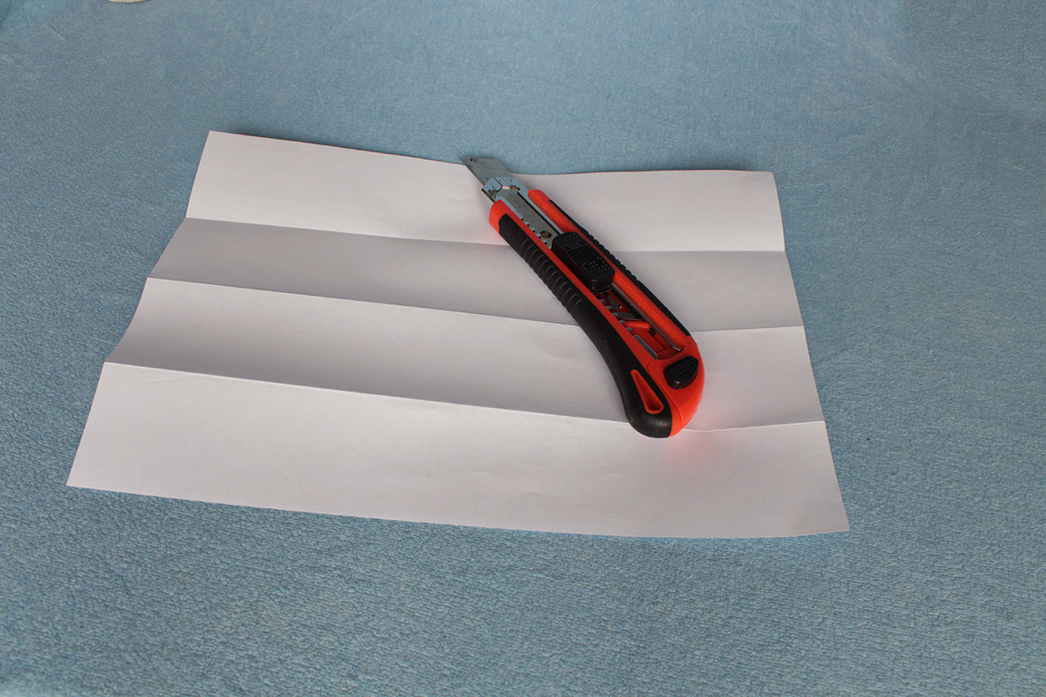 Papír přeložíme podélně na polovinu a pak ještě jednou, takže jej
