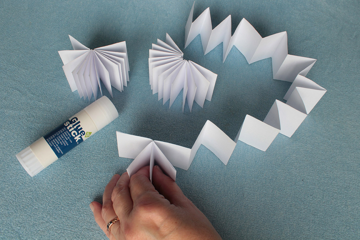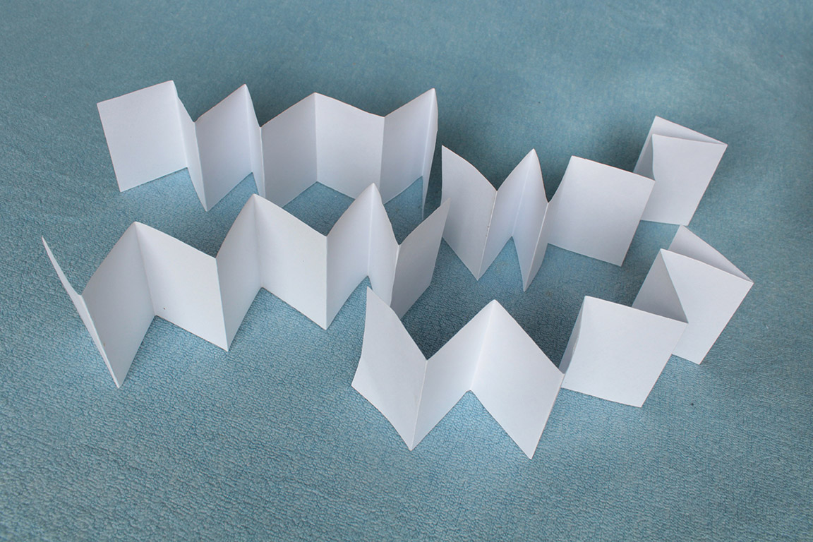 podle naznačených skladů uděláme ze všech čtyř pruhů harmoniky. Ty