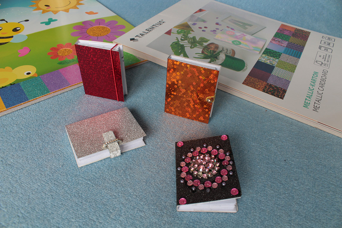 nebo pásky na uzavření zápisníku. Na lepení jsem používala chemoprén. Vymýšlení vzhledu desek mě hodně bavilo. Vnučka ocenila