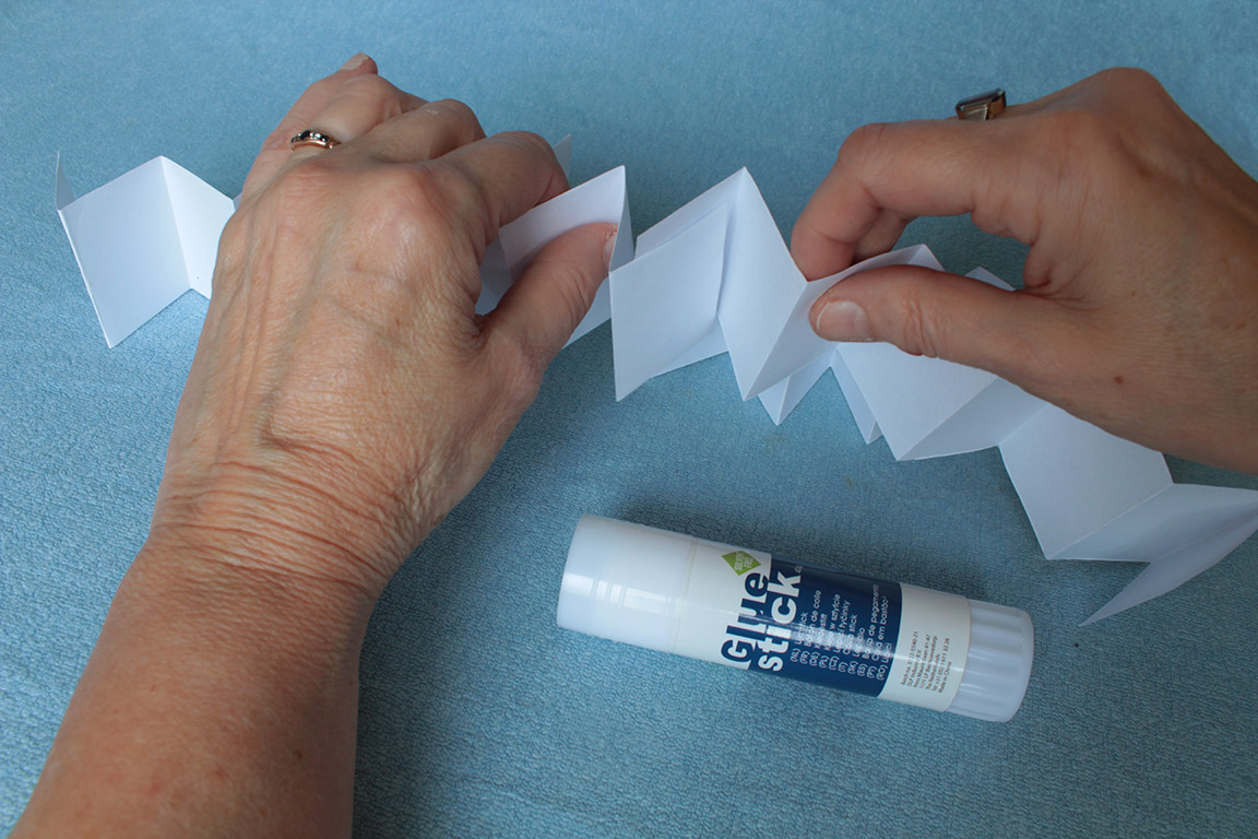 pak spojíme dohromady lepidlem. A teď začneme slepovat vždy dvě