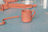 Na hrníčky si musíme z hmoty vyválet tenčí plát, který