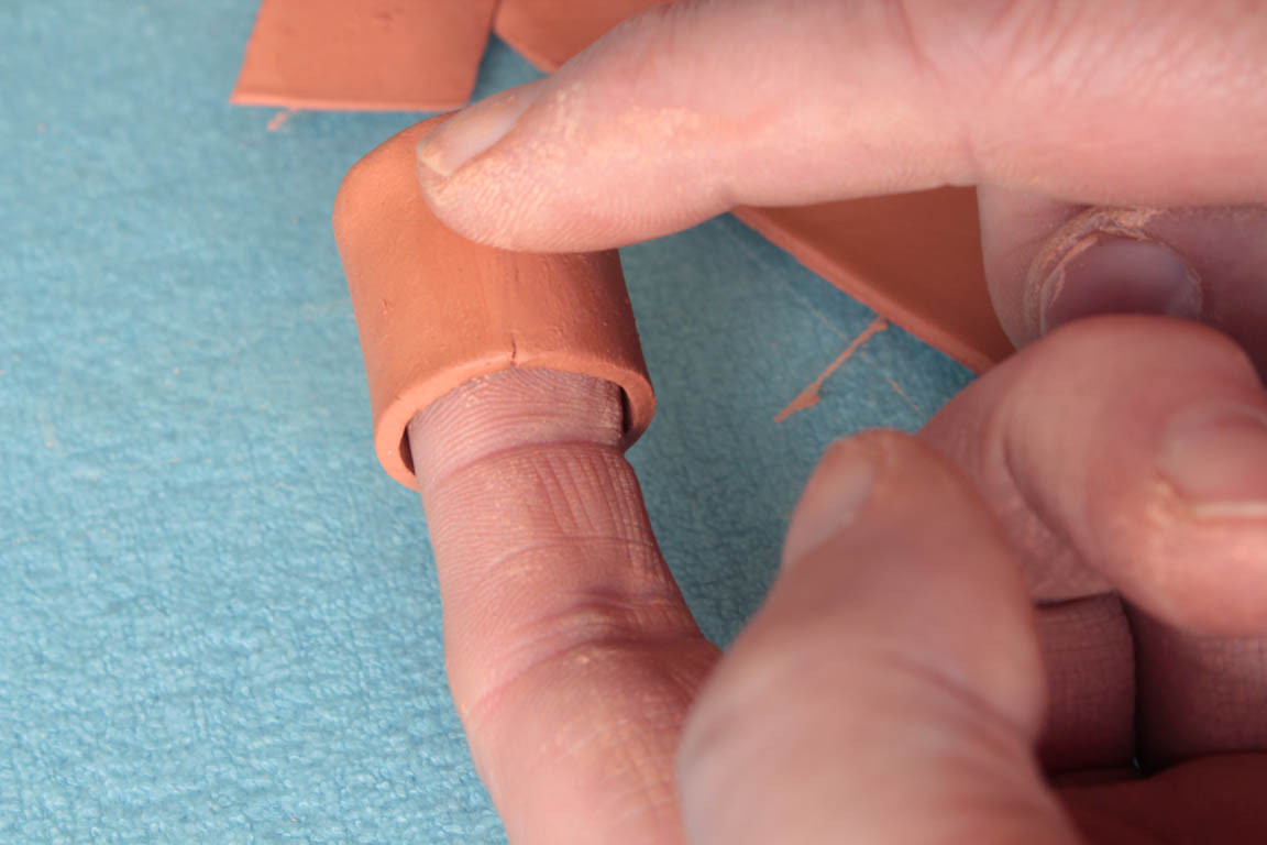 prstem. Pak už nám zbývá jen ouško, které vyrobíme z úzkého proužku vyválené