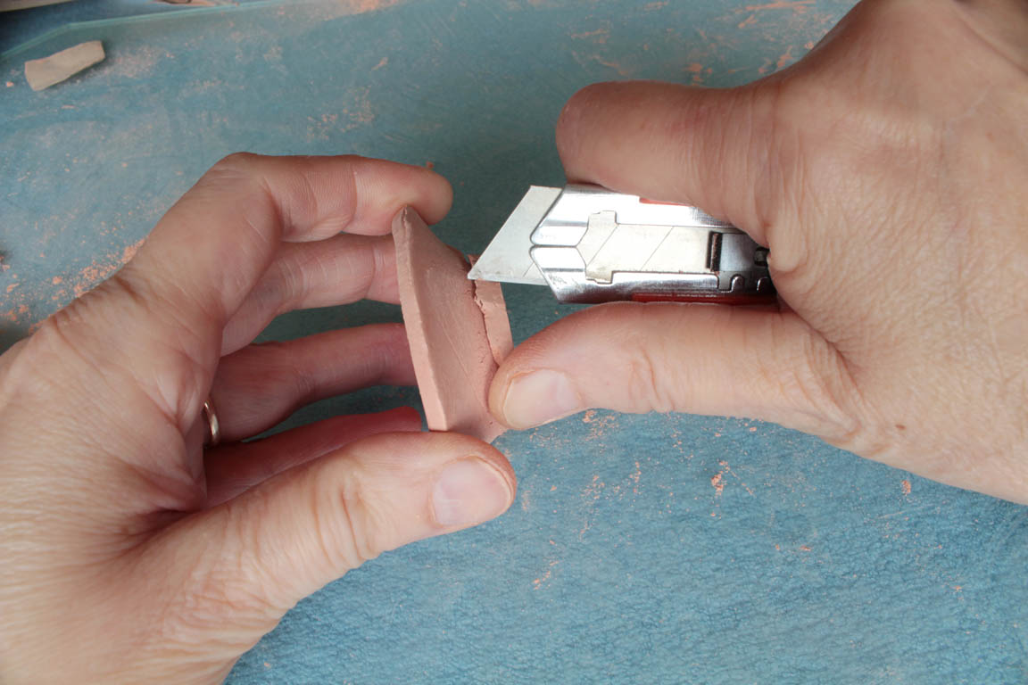 vyschnout. Potom odkrojíme velké přesahy ze spodní části a dobrousíme vše do