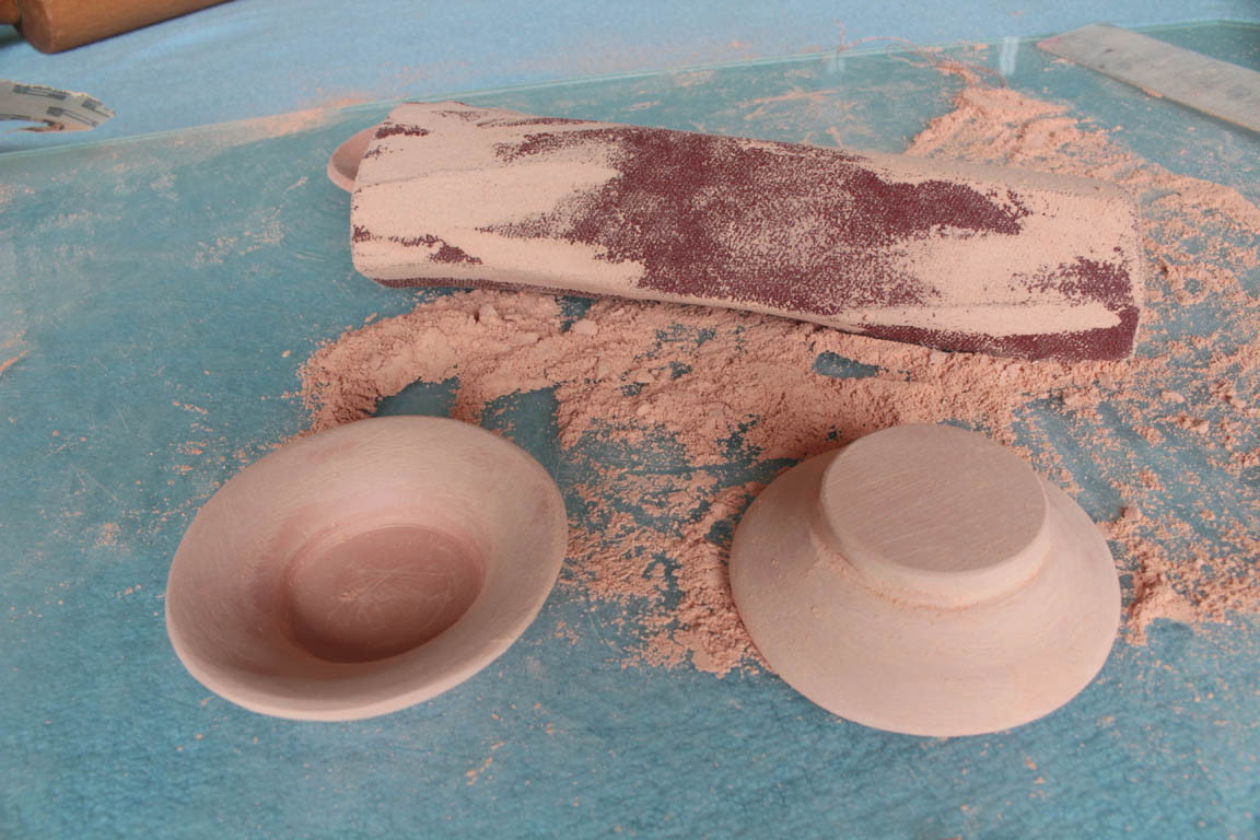 připravili už při výrobě talířů. Na vyšší hranu dna se nám bude "tělo"hrníčku snáze