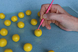 špendlíkovou hlavičkou, a to bude "bubák". Pak jablko otočím, z