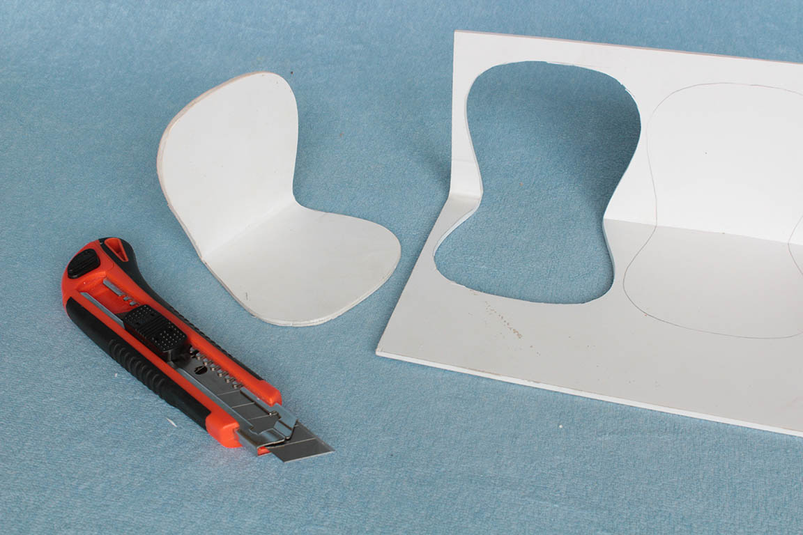 Teprve do ohnutého tvaru namaluji a vyříznu požadovaný tvar židle.