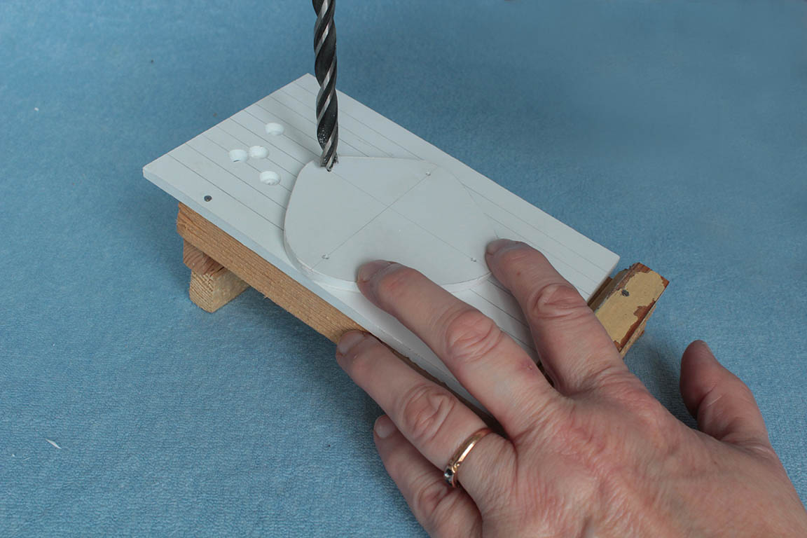 vrtačku ve stojanu, aby vrták vnikal do destiček v kolmém směru. Do