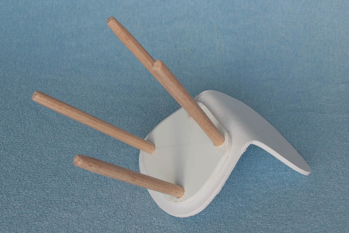 plochou přilepíme zespodu k sedadlu. Nohy bych mohla natřít na bílo,