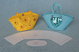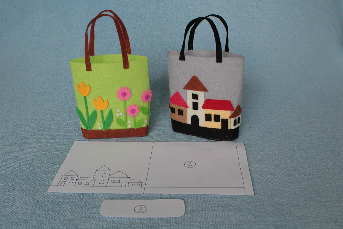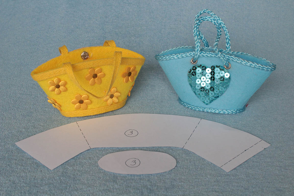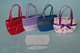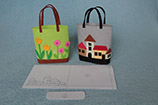 Tady jsem připravila tři střihy, podle kterých jsem tašky vyráběla. Všechny jsou spojované uprostřed zadní části pouhým přeložením, šlo by to určitě i na bocích, ale v případě filcu nebo jiných silnějších materiálů je to takhle vzhlednější. Střih na tašky s domečky a květinami má namalovanou záložku na boku, ale stejně bych i v případě polepování papírového základu ušila spoj na zádech...a nebo pak raději na obou bocích.