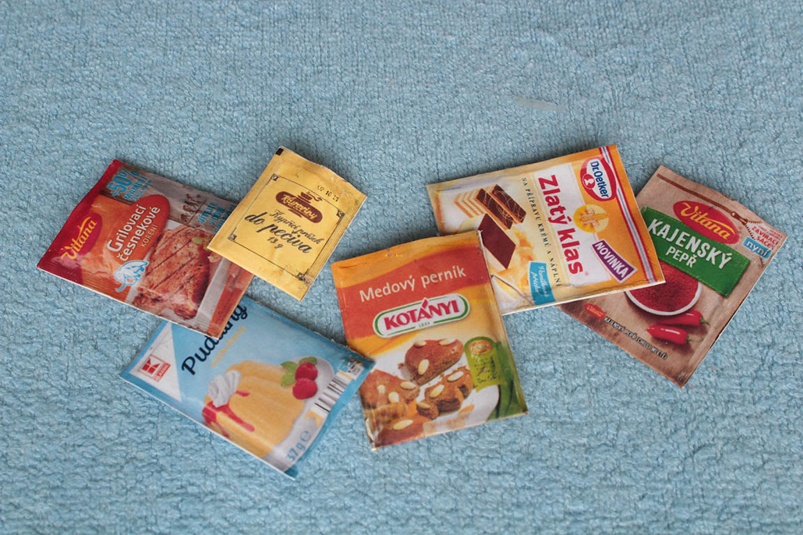 Zde je k vytištění stránka A4 s rozloženými zmenšenými obaly nejrůznějších výrobků. Při tisku nastavte velikost na hodnotu 100%.