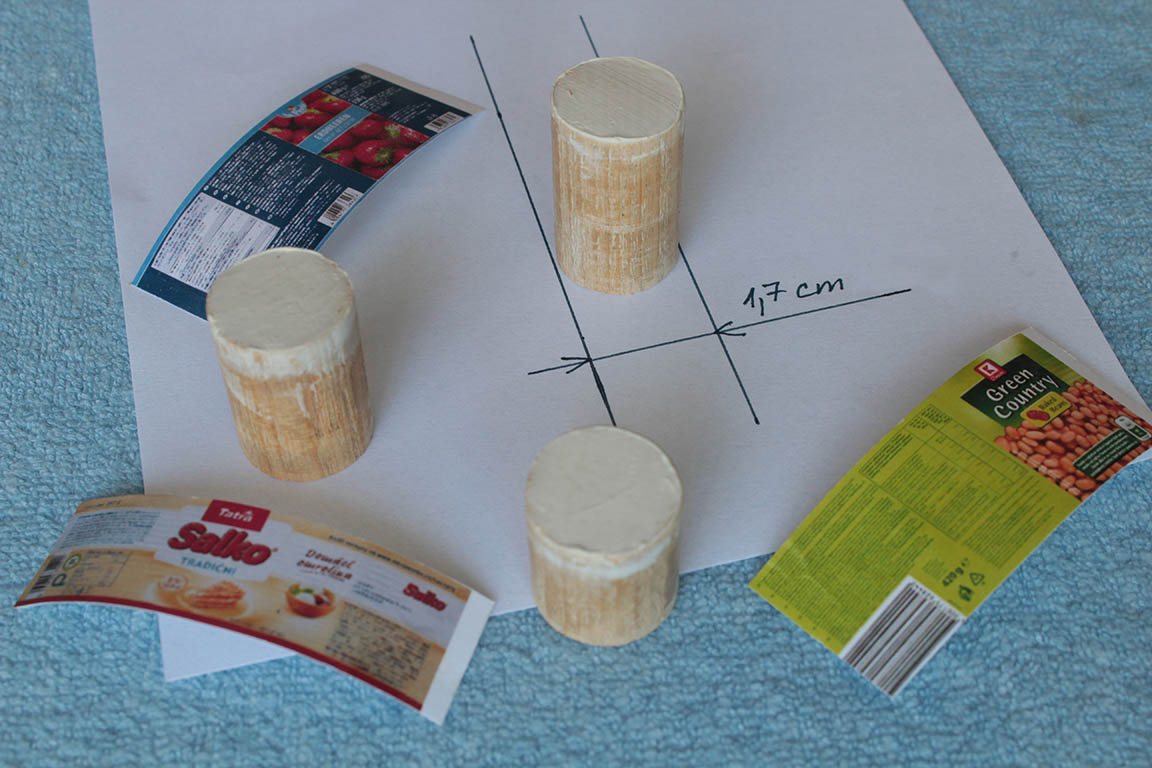 nejlépe dřevěnou tyčku s průměrem 1,7cm. Z té si nařežeme válečky,