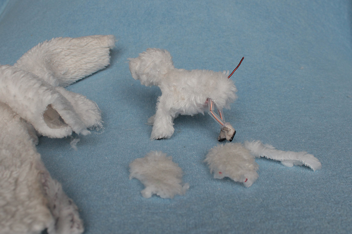 hlavy, vyvrtala jsem otvory pro drát tvořící nohy, ocas a krk. Z fima jsem si vymodelovala psí čumáky, tlapky a oči. Do hlavy jsem