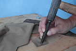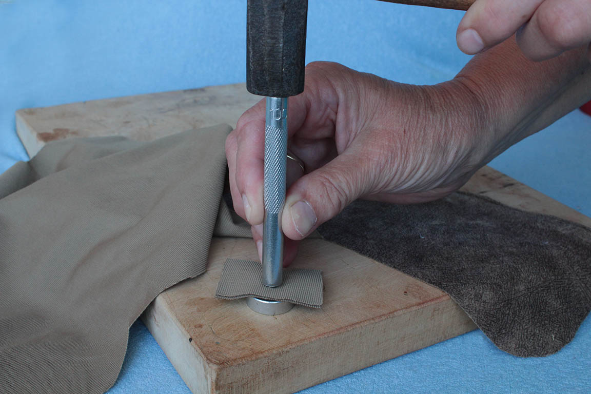 podložkou nad dírku položila, nasadila důlčítk a poklepáváním v