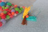 přilnou. Takže, bambulku vložím za svazek, který bude tvořit křídla,