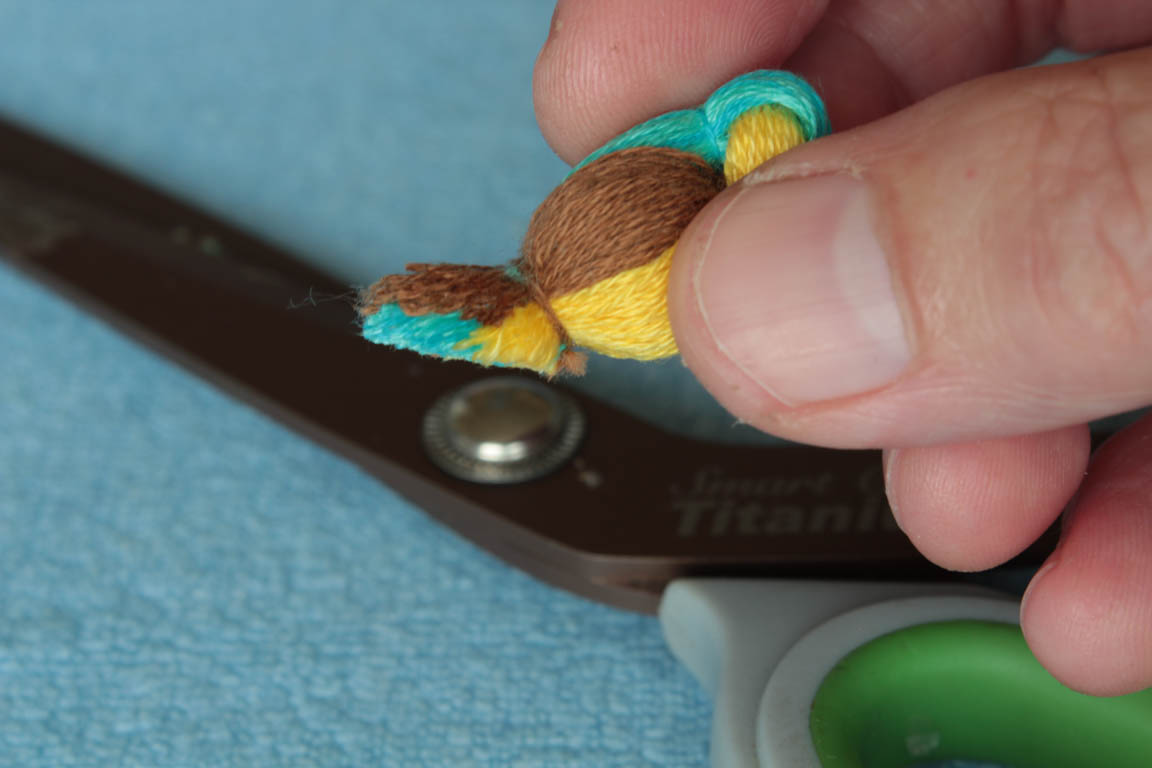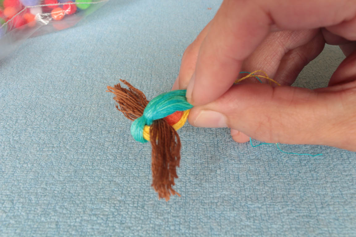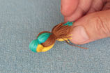 namotala hnědou bavlnku a to budou křídla. Vložíme je za uvázanou