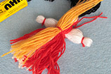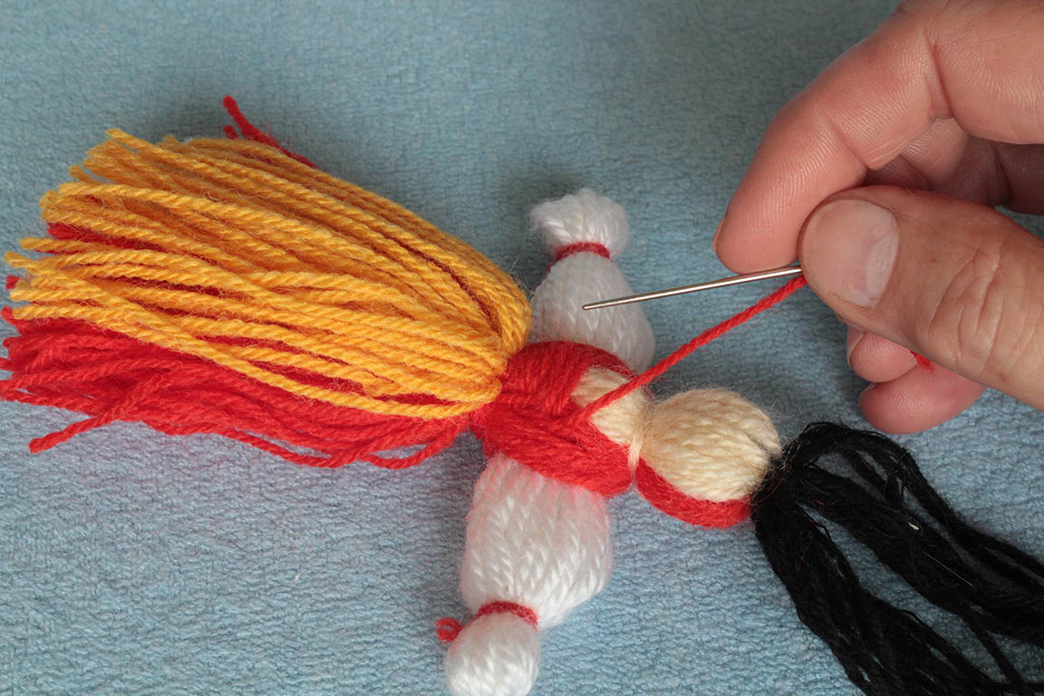 došijeme ručně jehlou. Oči a pusu lze vyšít, namalovat a nebo