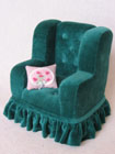 čalounickou jehlou skrz celý sedák i záda ušáku. Na konec jsem svrchu přišila sametovou látku i na zadní část křesla. Kanýr je připevněný jen ušitou