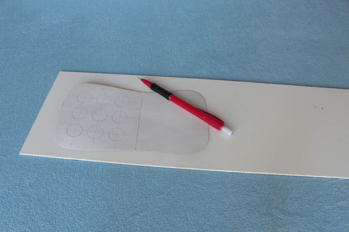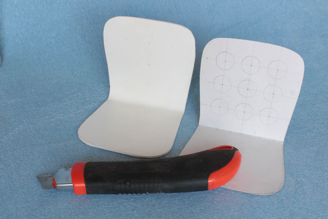 nechala přesahovat. Pomocí dvou koleček vyříznutých z pěněného PVC,