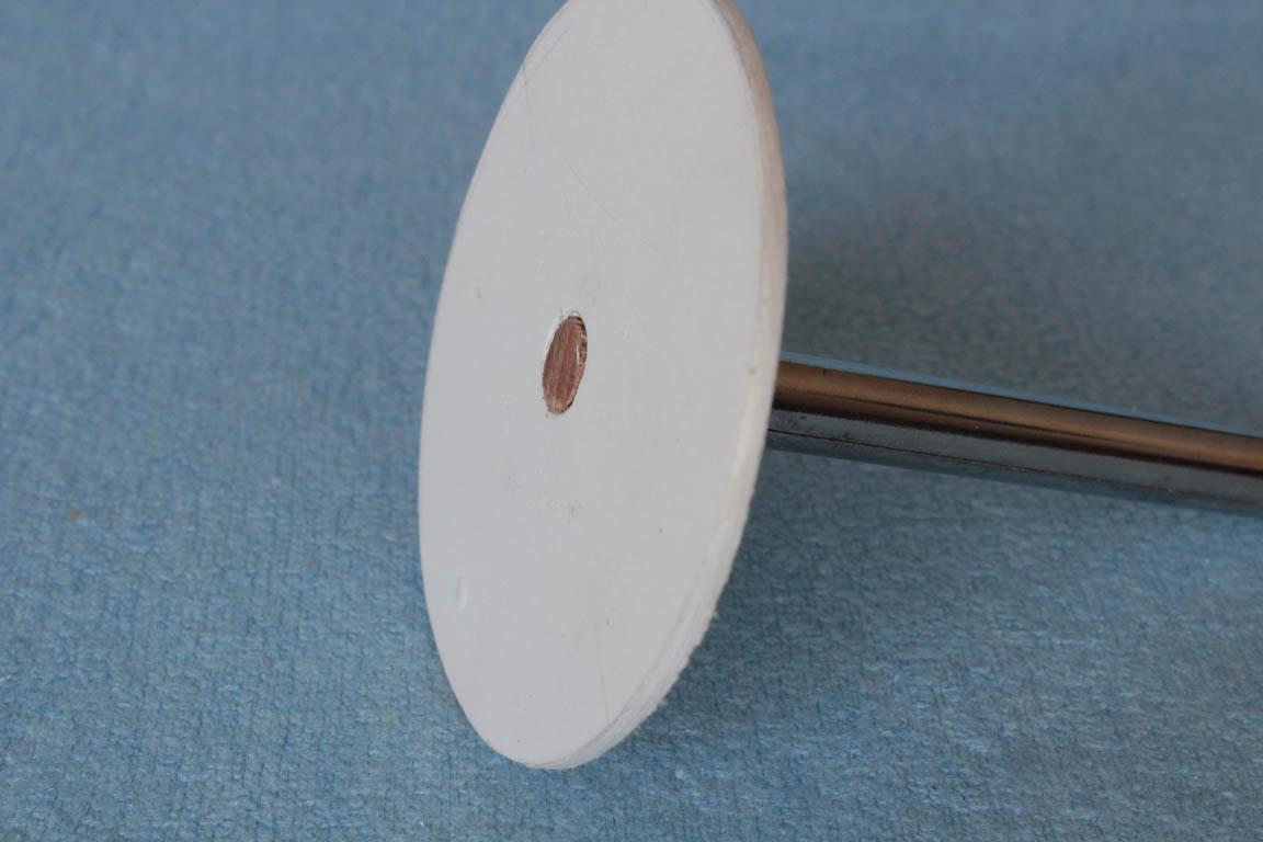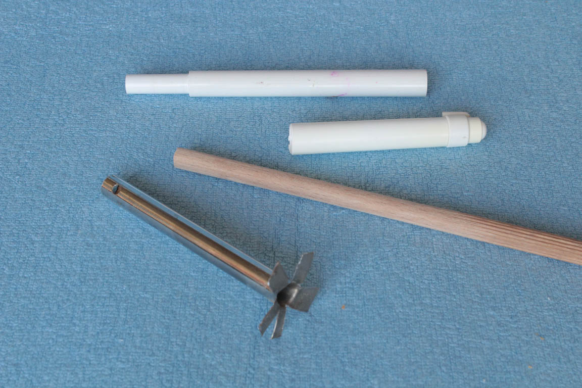 kolečkem tenkého plastu. Pak kovovou trubičku s dřevěnou výplní