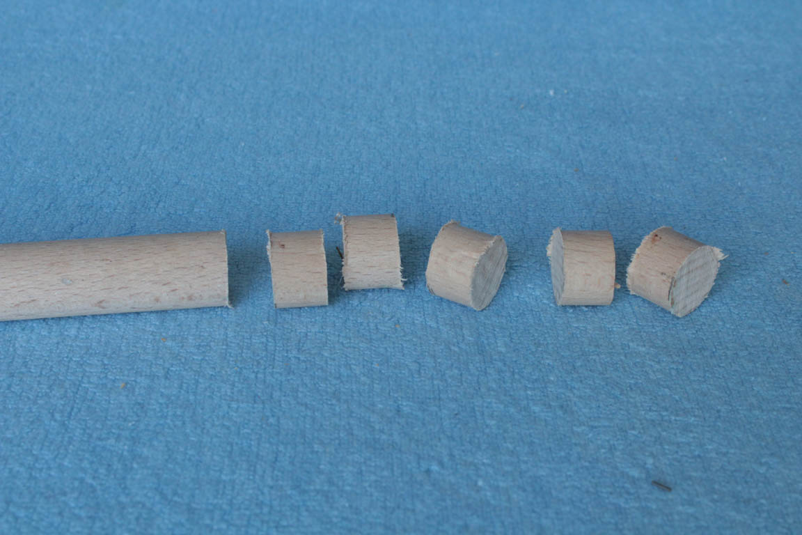 Kolečka vytvořím z dřevěné špejle o průměru 15 mm, ze které