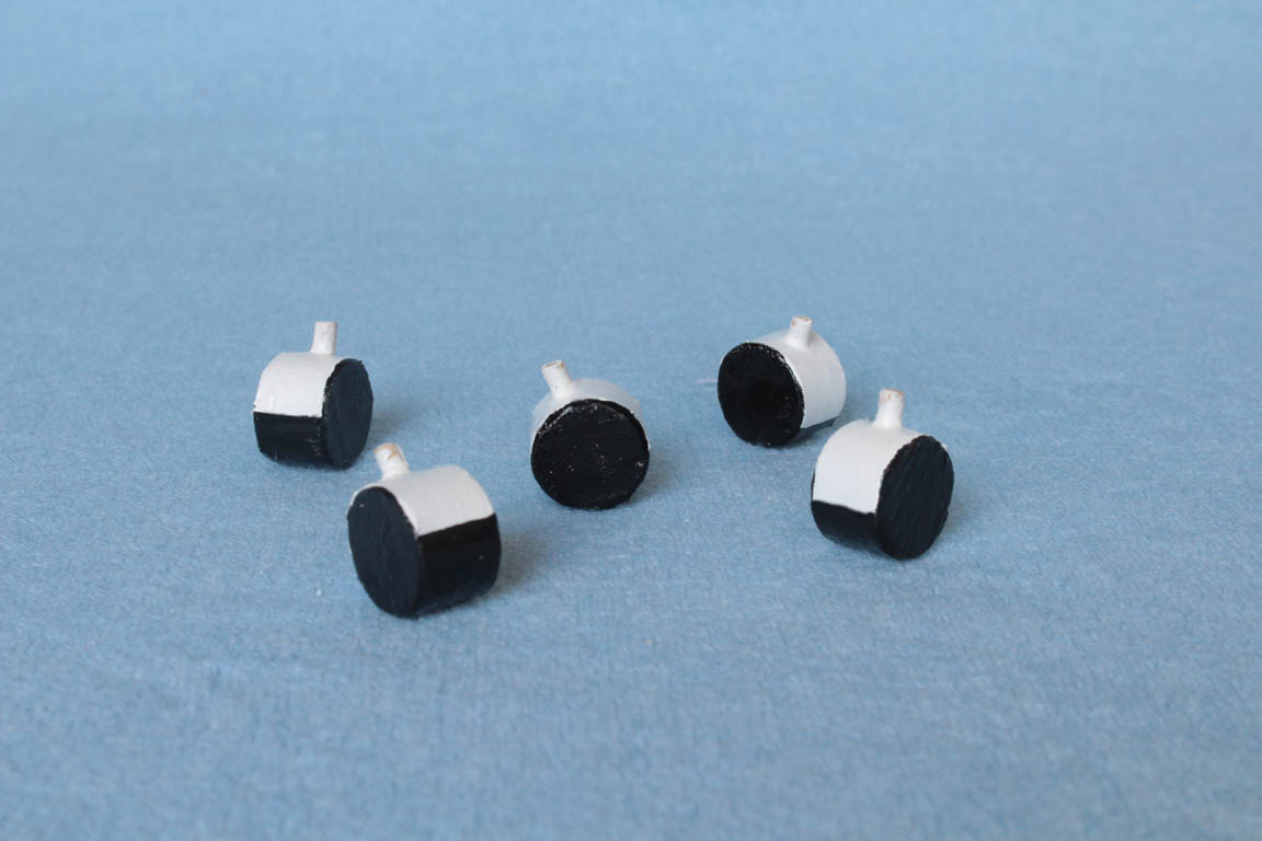 kuchyňské špejle. Pak jsem kolečka natřela bílou a černou barvou
