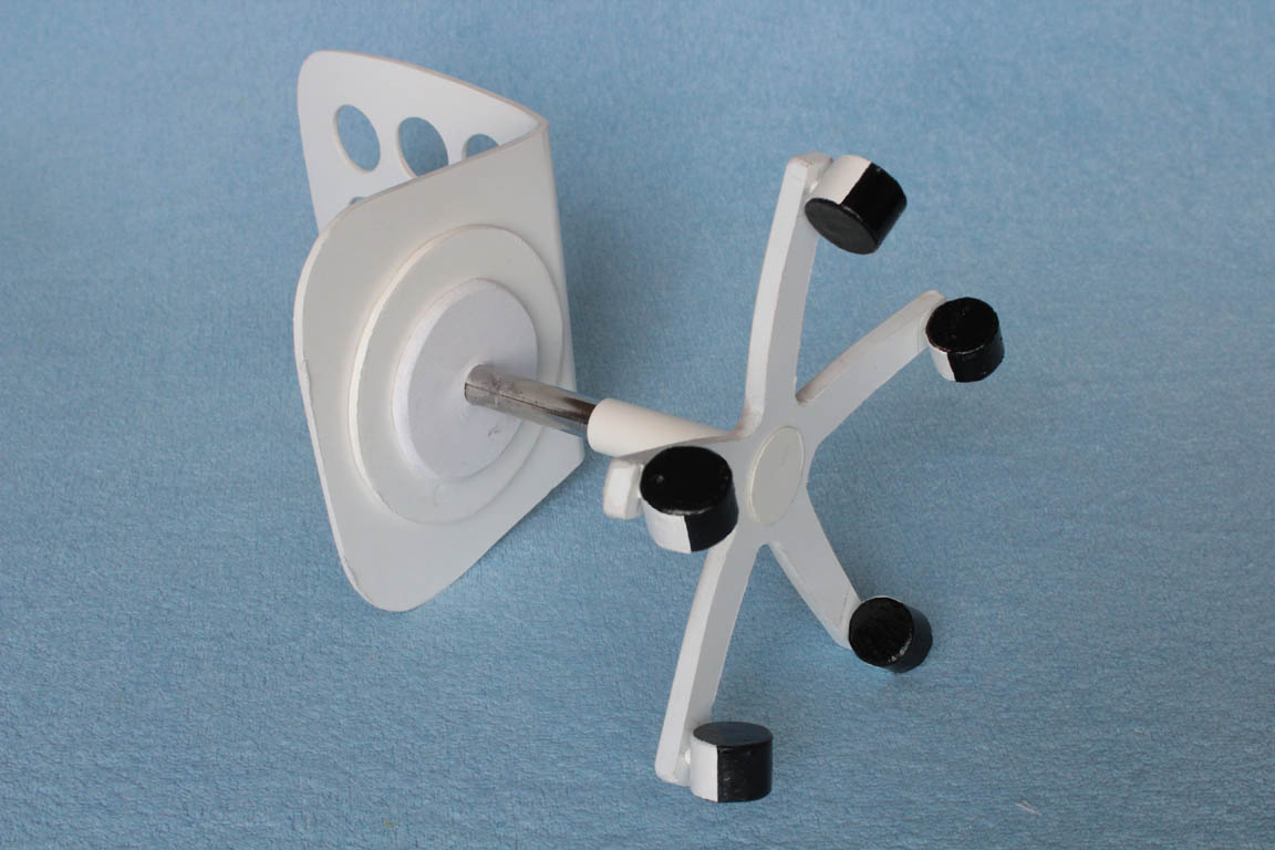 Spodní hvězdicovou část židle (průměr je cca 13 cm), do které budou zasunutá kolečka,