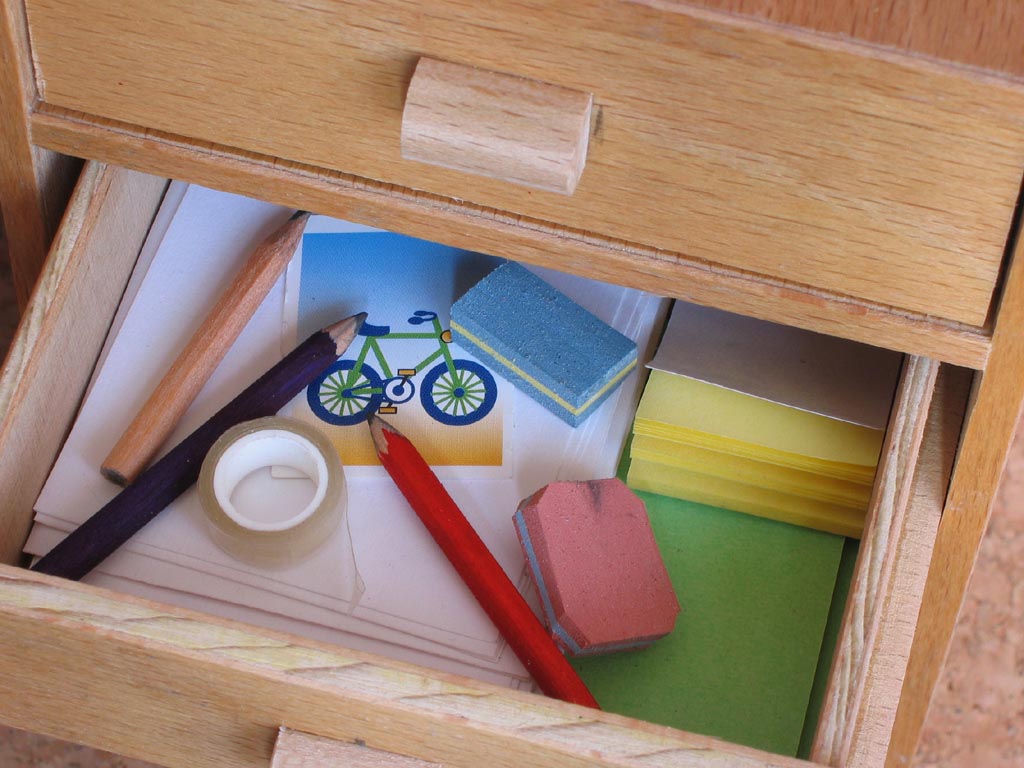 je polepeno potřebnými obrázky vytištěnými na černobílé tiskárně.Myš, propiska,