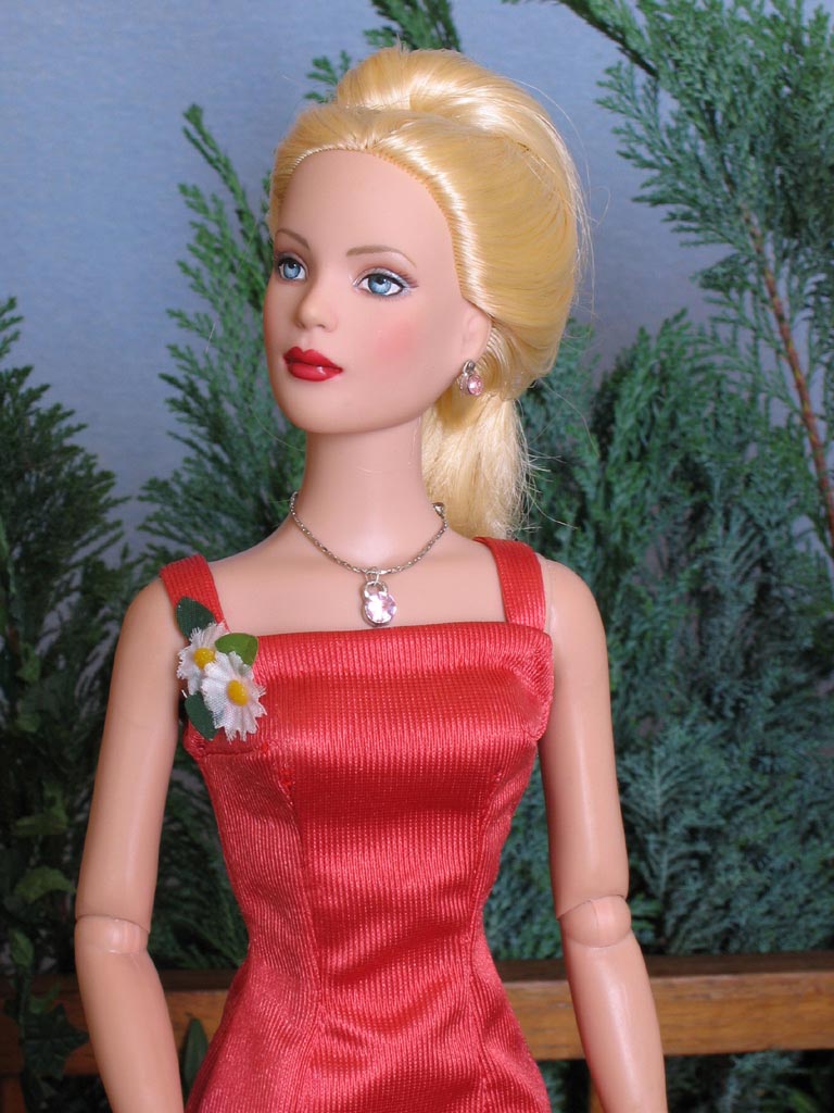 šaty ozdobené kytičkou. Kabelku jsem vyrobila z rukavičkářské usně. Náušnice a