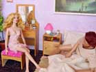 Natálka má negližé z růžového poloprůsvitného silonu. Látka se bohužel nedala