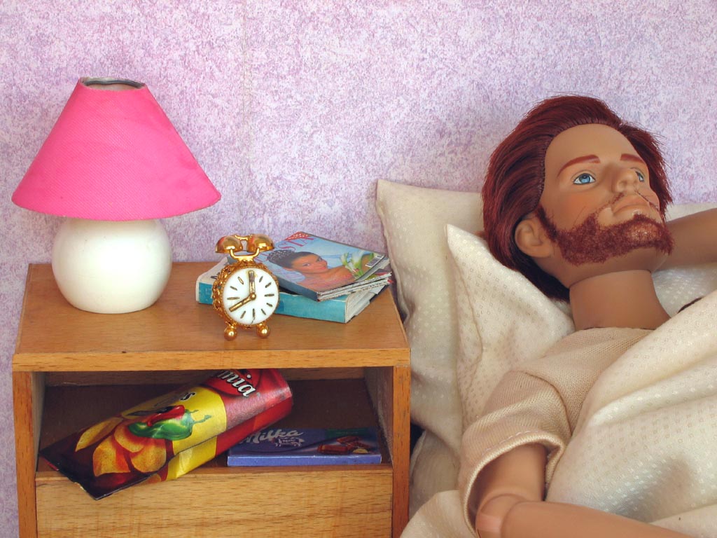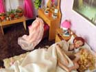 beránčí kožešiny. Veškerý nábytek je opět z překližky. Mým záměrem bylo udělat