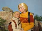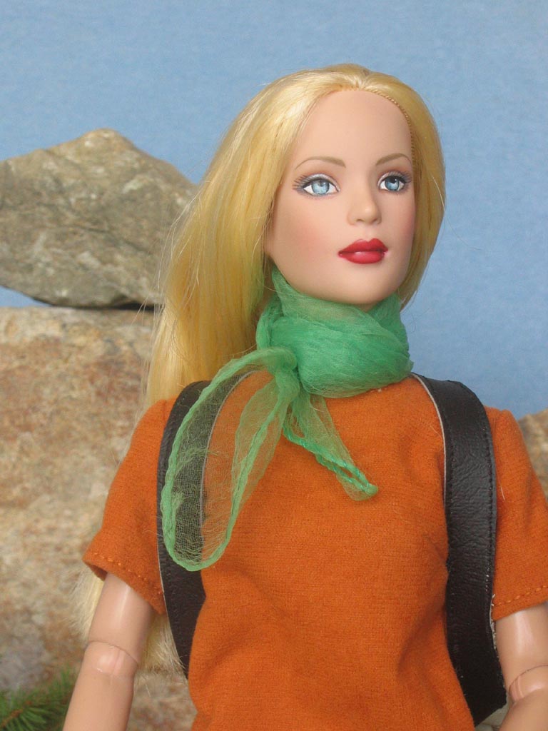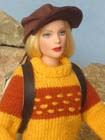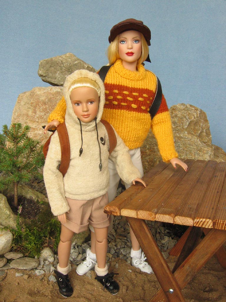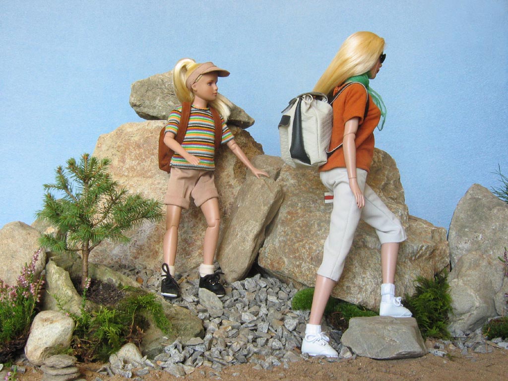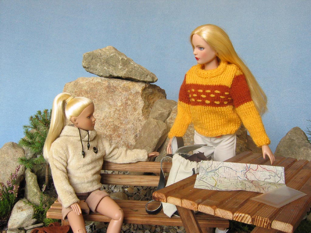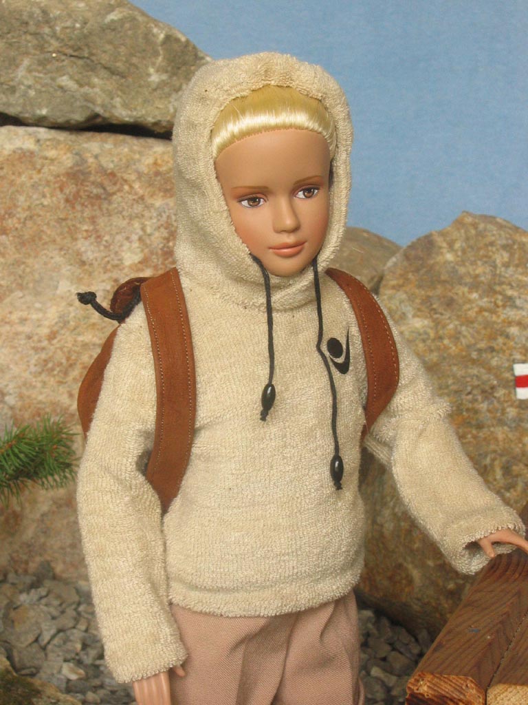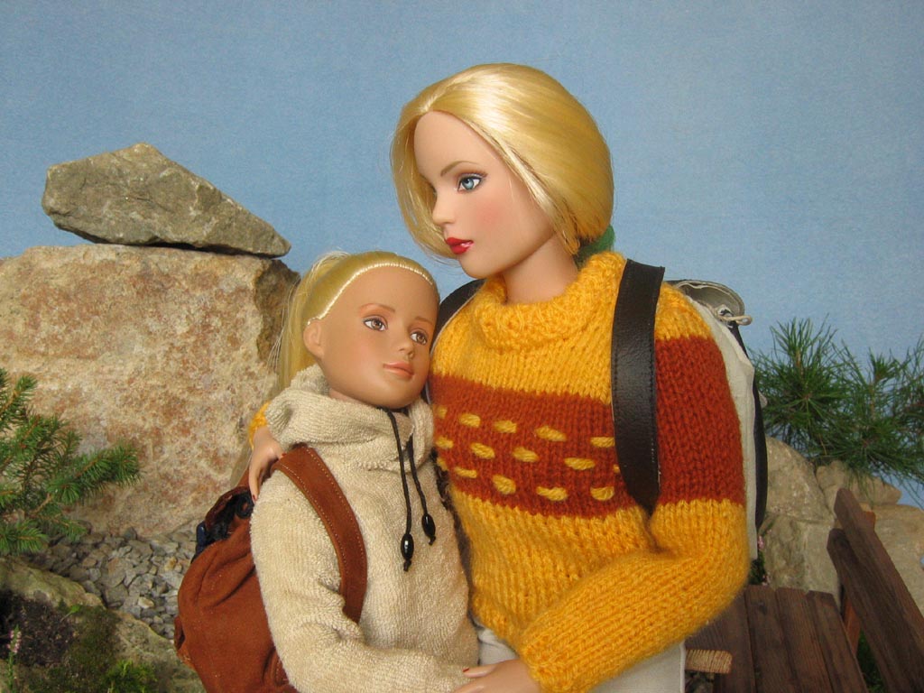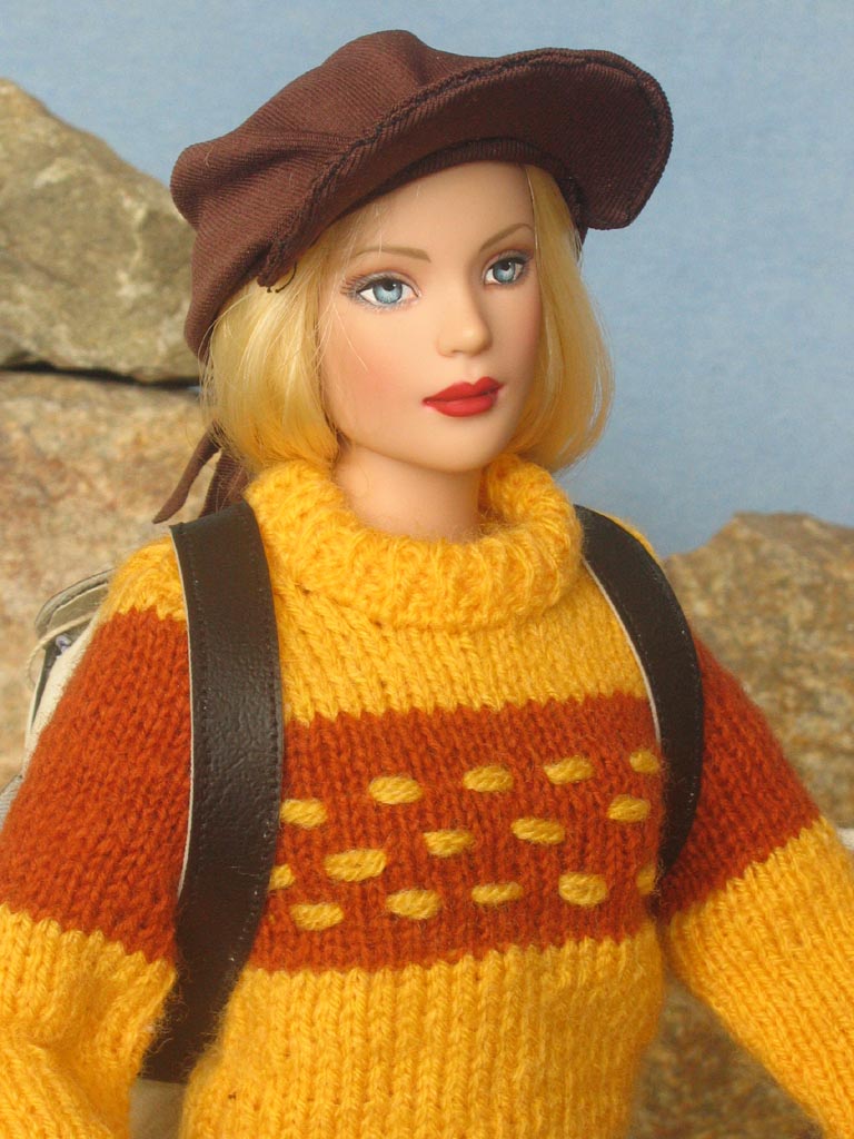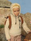 pro zahřátí vlněný svetr. Proti větru a slunci měla v koženkovém batohu