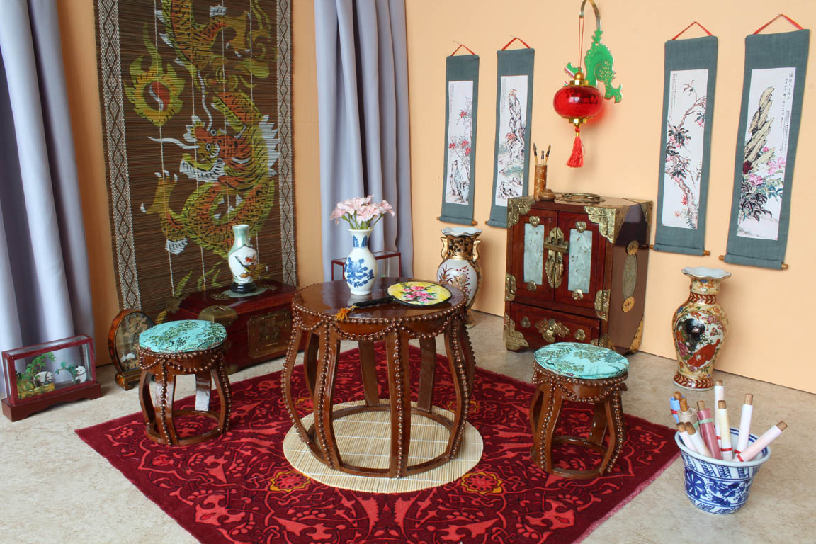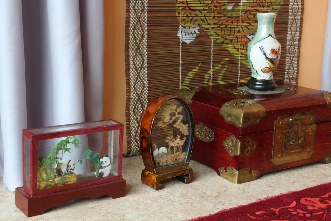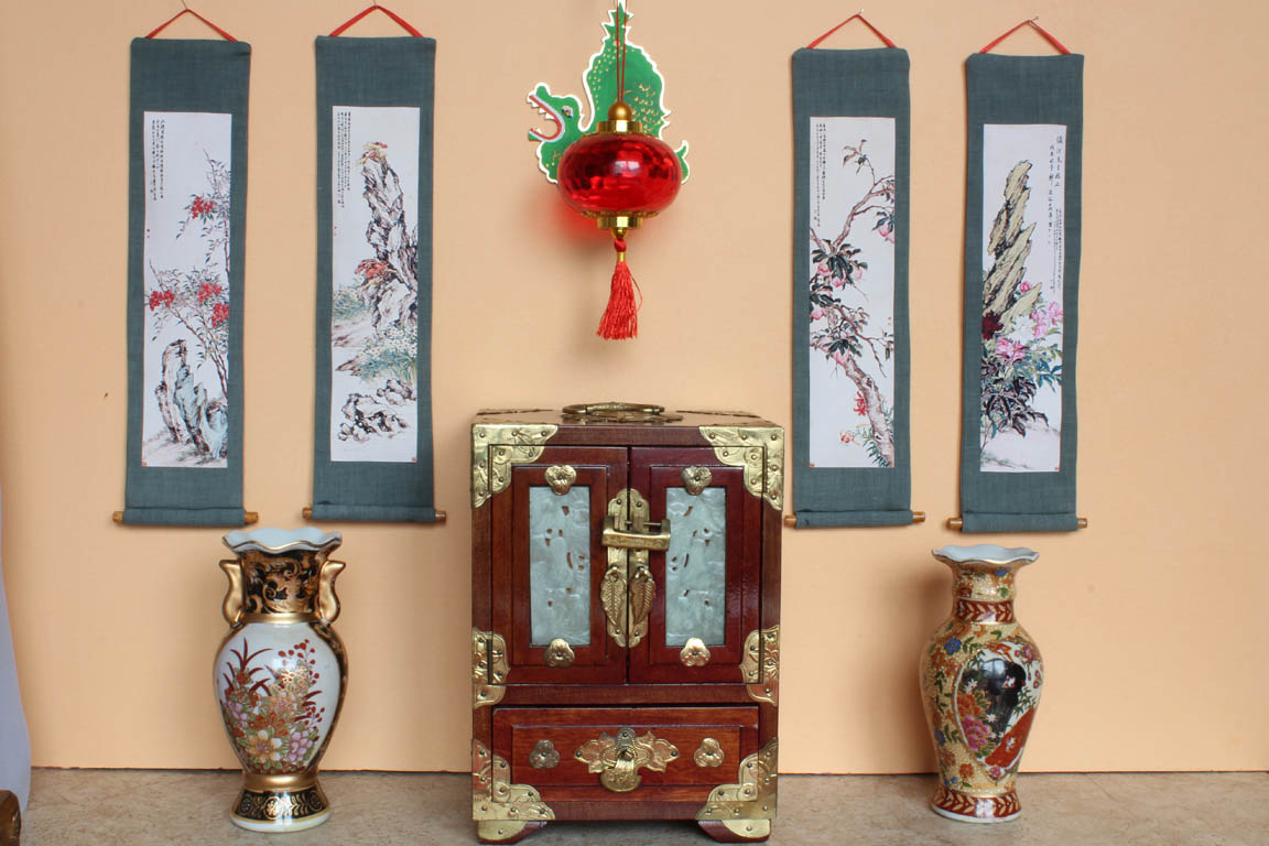 velké čínské vázy a zlatý tácek nám poslala Erika. Závěsné svitky jsem si