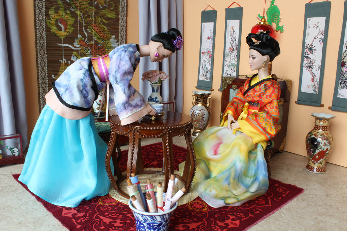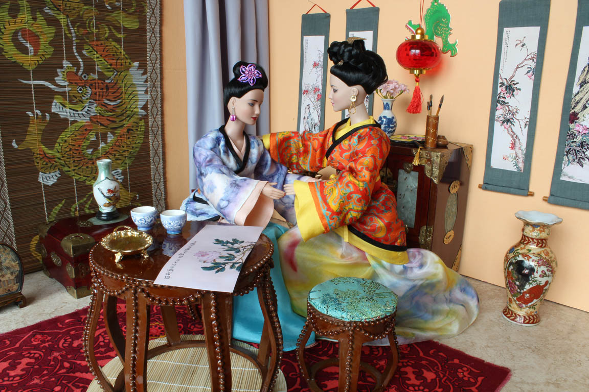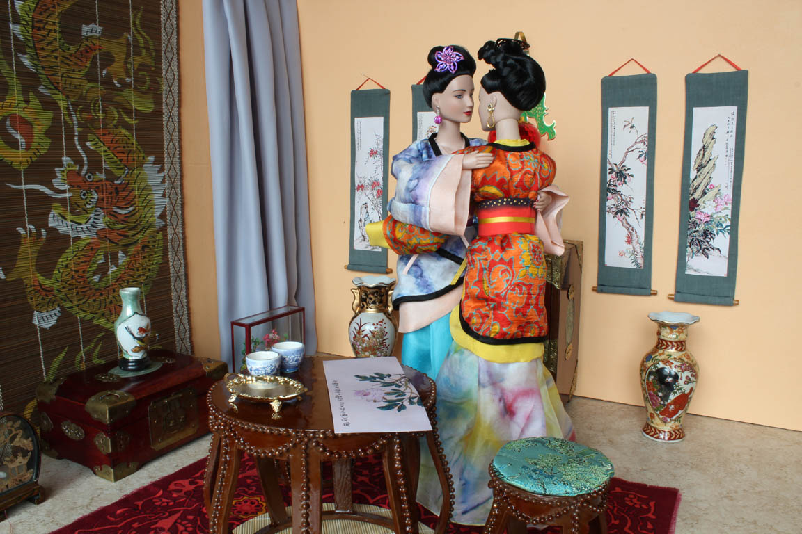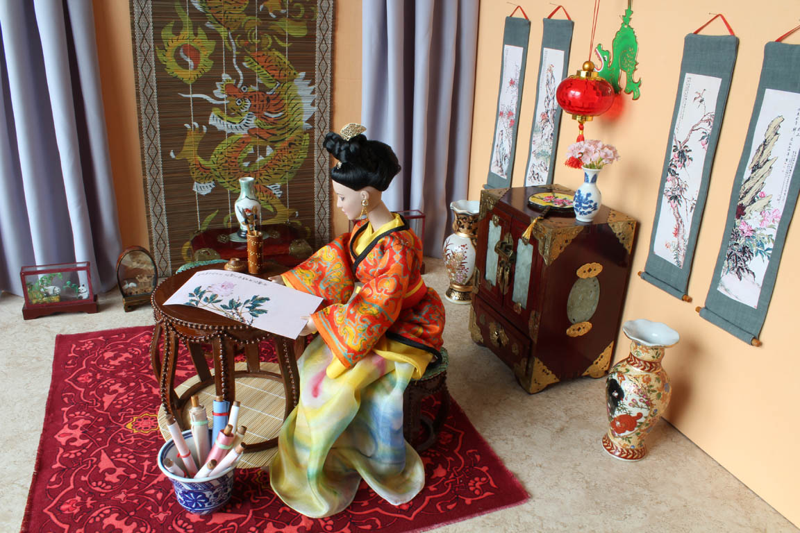 velké čínské vázy a zlatý tácek nám poslala Erika. Závěsné svitky jsem si
