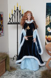 ke správným střihům. Sabina má vrchní sametové šaty princesového střihu se