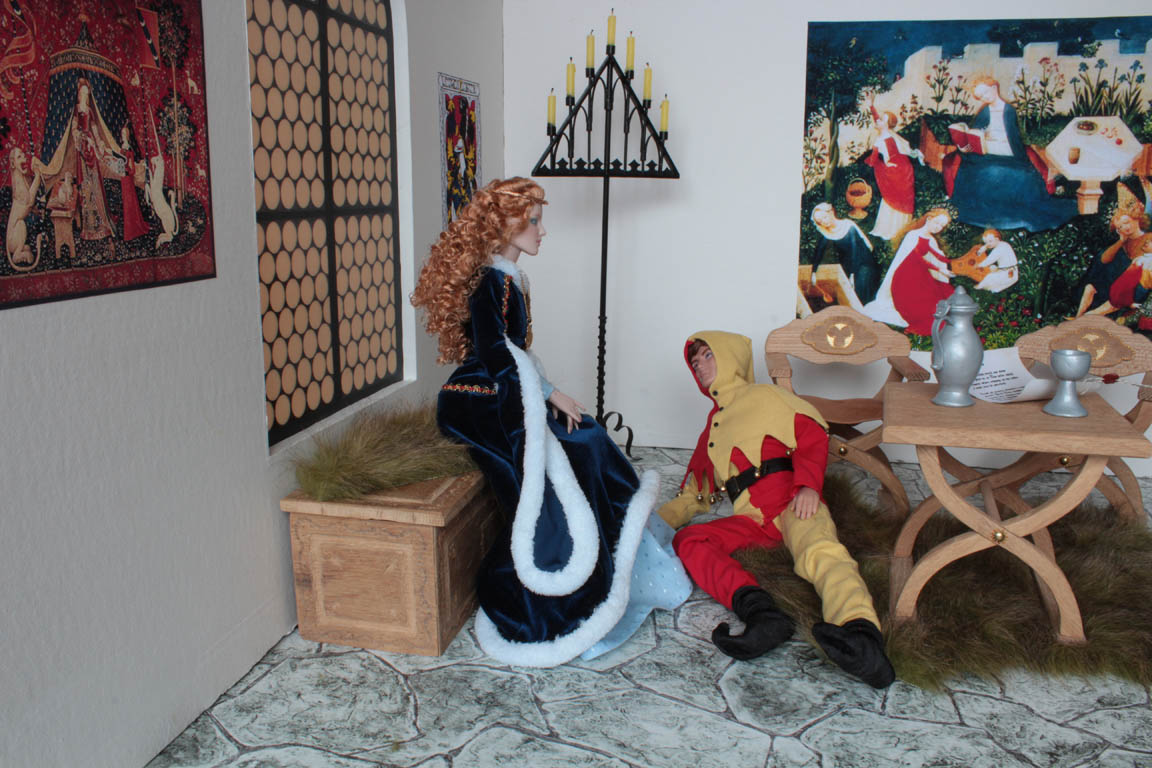 na hradě?! Teď hned ji chce vidět...pohání šaška, aby ji přivedl.