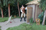 a snaží se koně uklidnit. Daniel vyběhl ven z chýše, kůň se ale vysoko vzepjal,