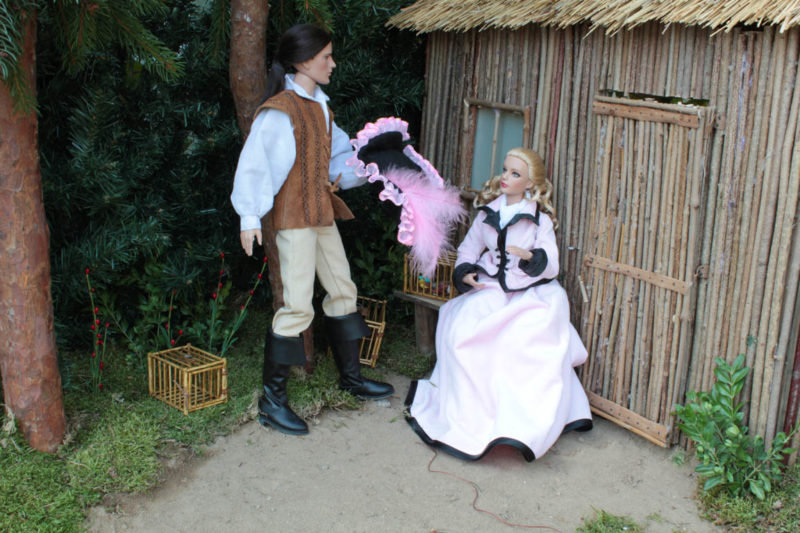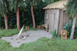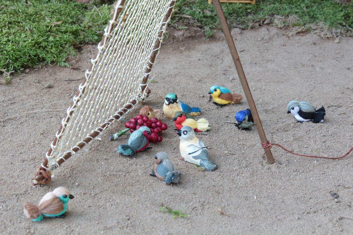 a síť na jejich odchyt. Chýši i lavičku jsem vyráběla do dřívějších scén. Po