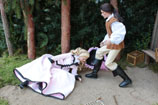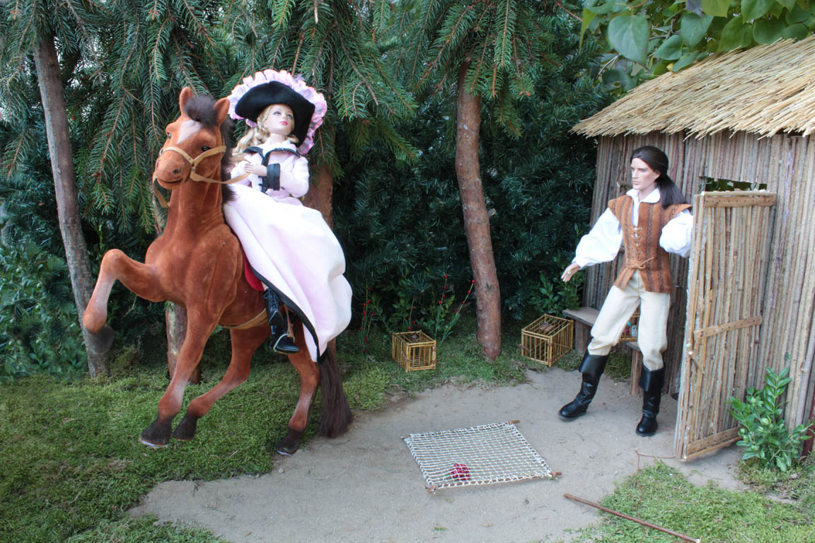shodil jezdkyni na zem a utekl. Hrabě pomáhá dámě vstát, zjišťuje zda není