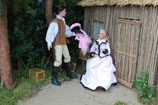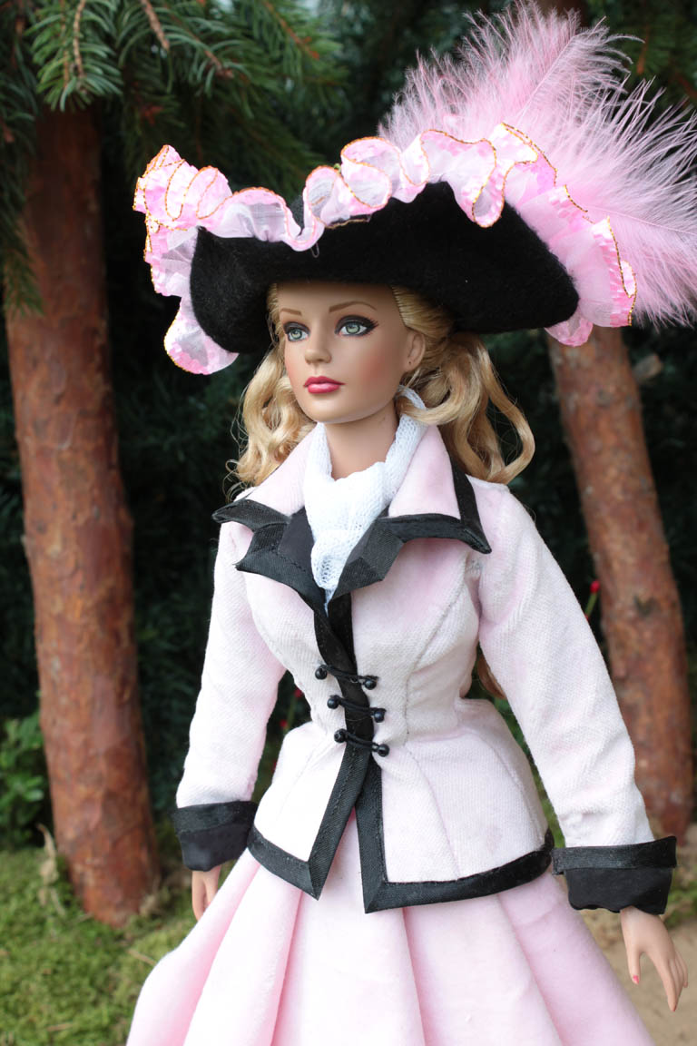 Valentýna dostala jakýsi jezdecký kostým z růžového sametu, olemovaný černým