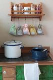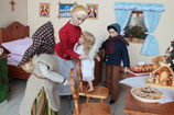 doma otáčí kolem plotny, děti jdou společně s tatínkem za babičkou a dědou do