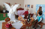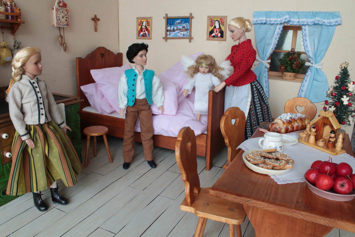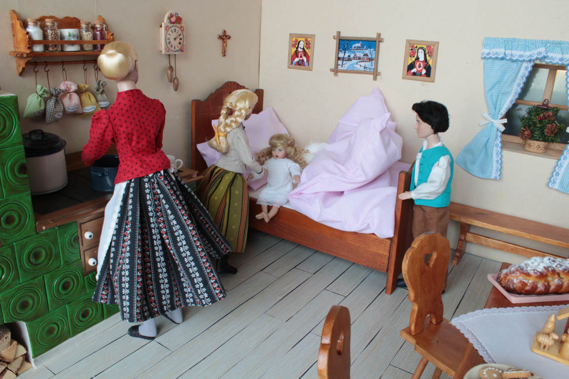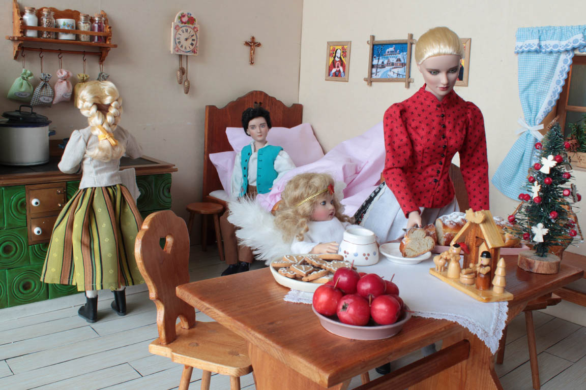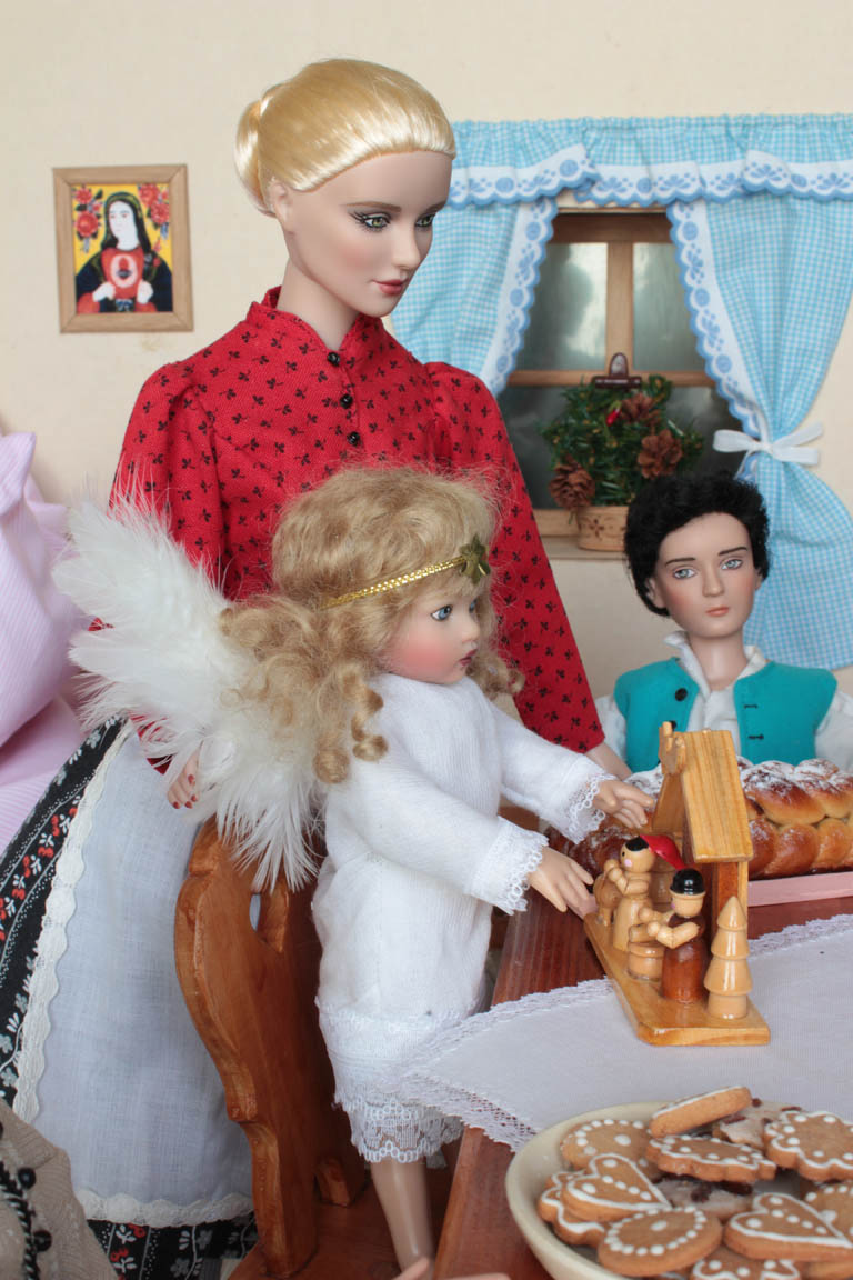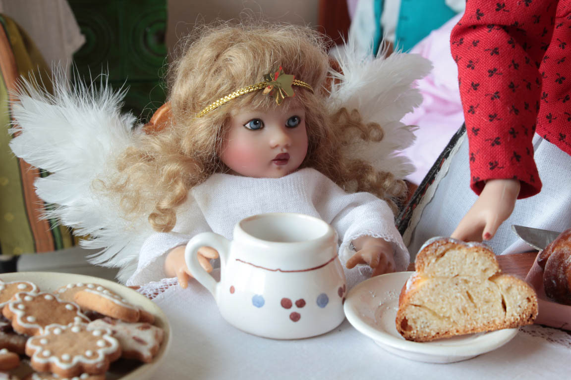 je ze všeho celá vylekaná, ale prokřehlého andílka hned zabalí do peřiny a nabízí
