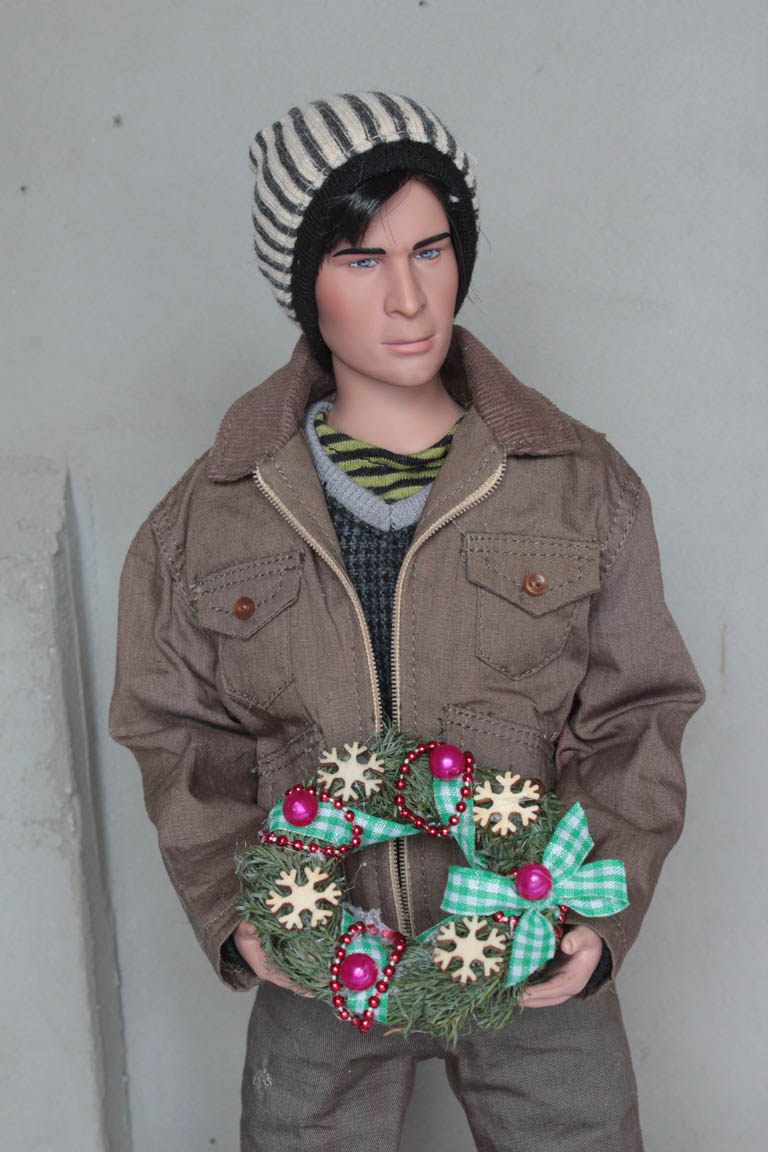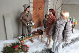 dárkového koše pro babičku. A už jdou kolem prodejce vánočních věnců, kde to