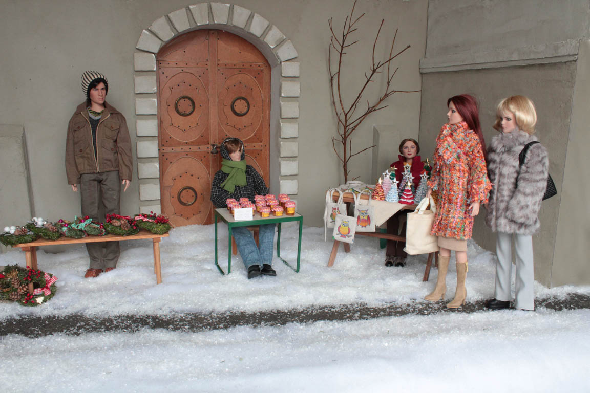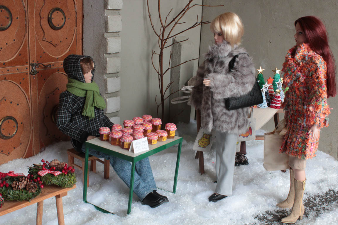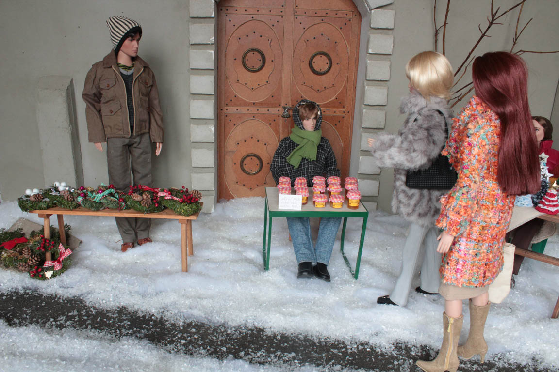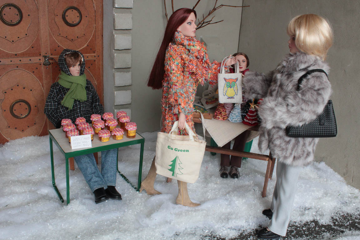 i když je venku zima a občas se musí brodit ve sněhu. Pomalu prochází kolem trhovců a