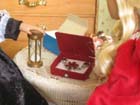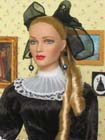 slavnostnější šaty. Jsou z černého sametu s bílým plisovaným zdobením. Použitý