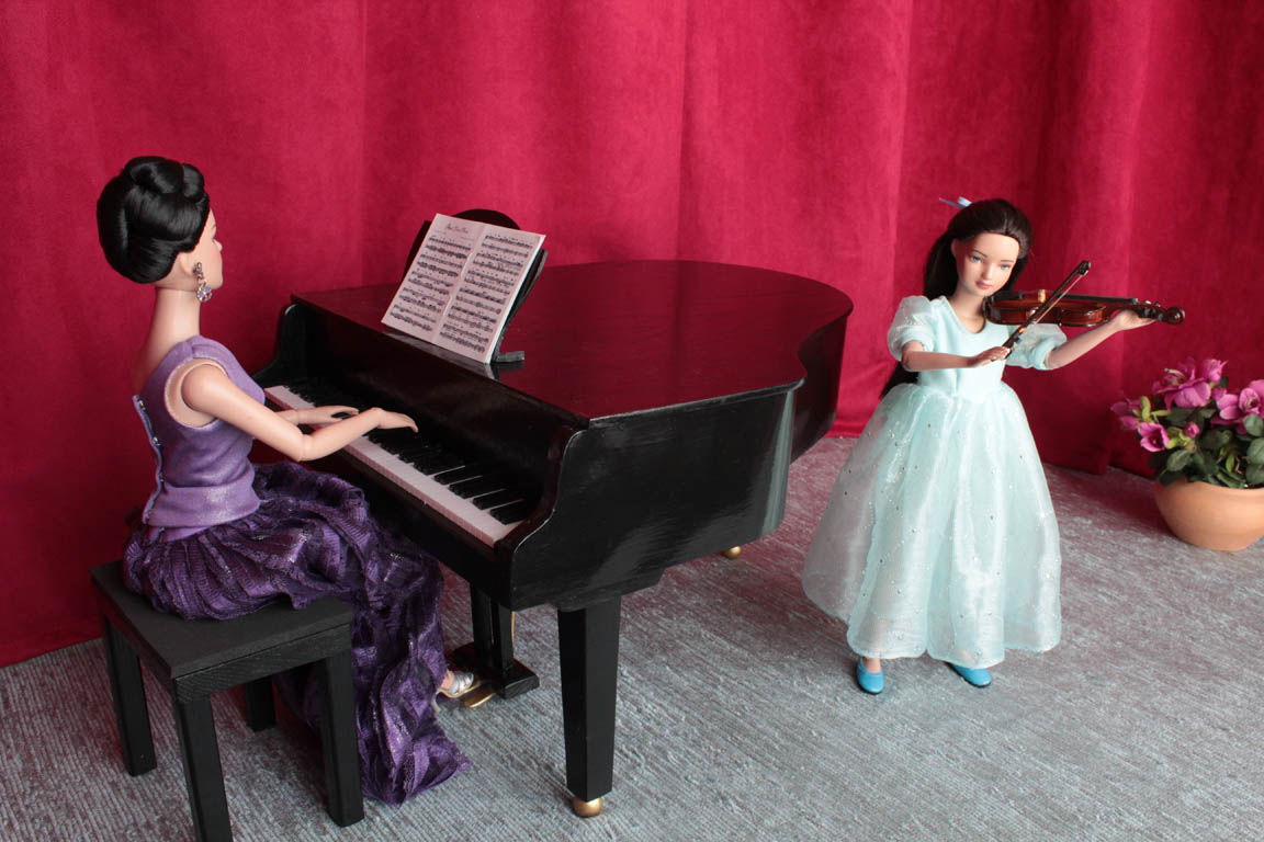 ale odloží housle, zaskočí nic netušící umělkyni přítomnost její malé dcerky na