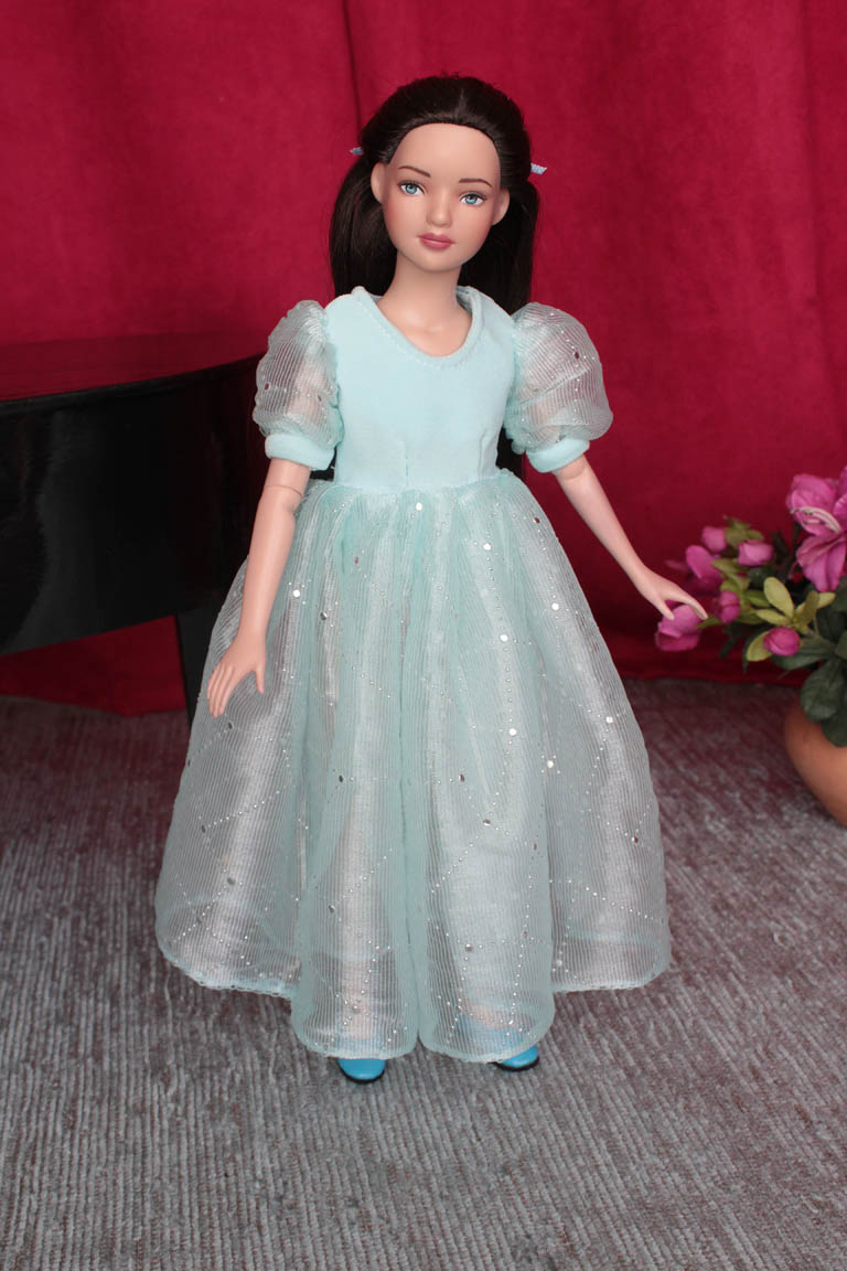 knize. Byly to šaty z filmu Jih proti Severu, původně vyrobené pro 12"panenku barbie. Nenáročnou úpravou vznikly šaty pro 6" panenku od Helen Kish.