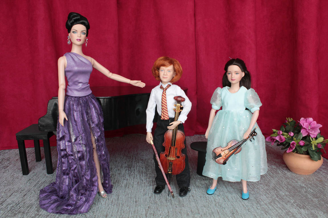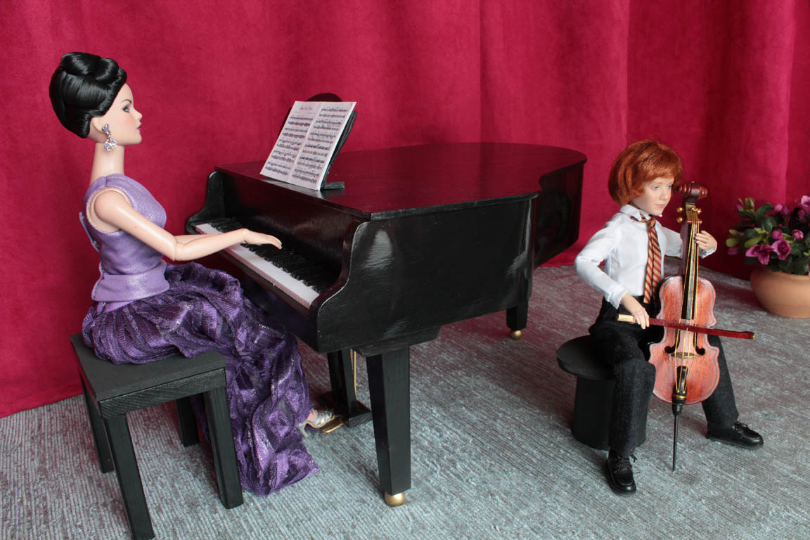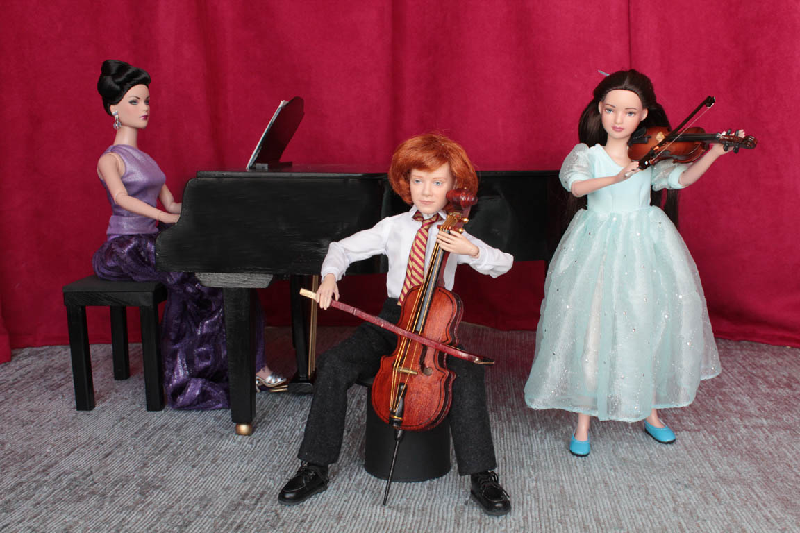 dětský hudebník, violoncellista Toník. Všichni tři společně zahrají několik