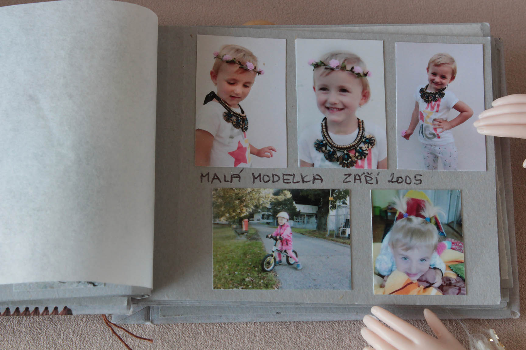 fotografiemi jejich dcery. Na první stránce je Jituška coby malé novorozeně, na